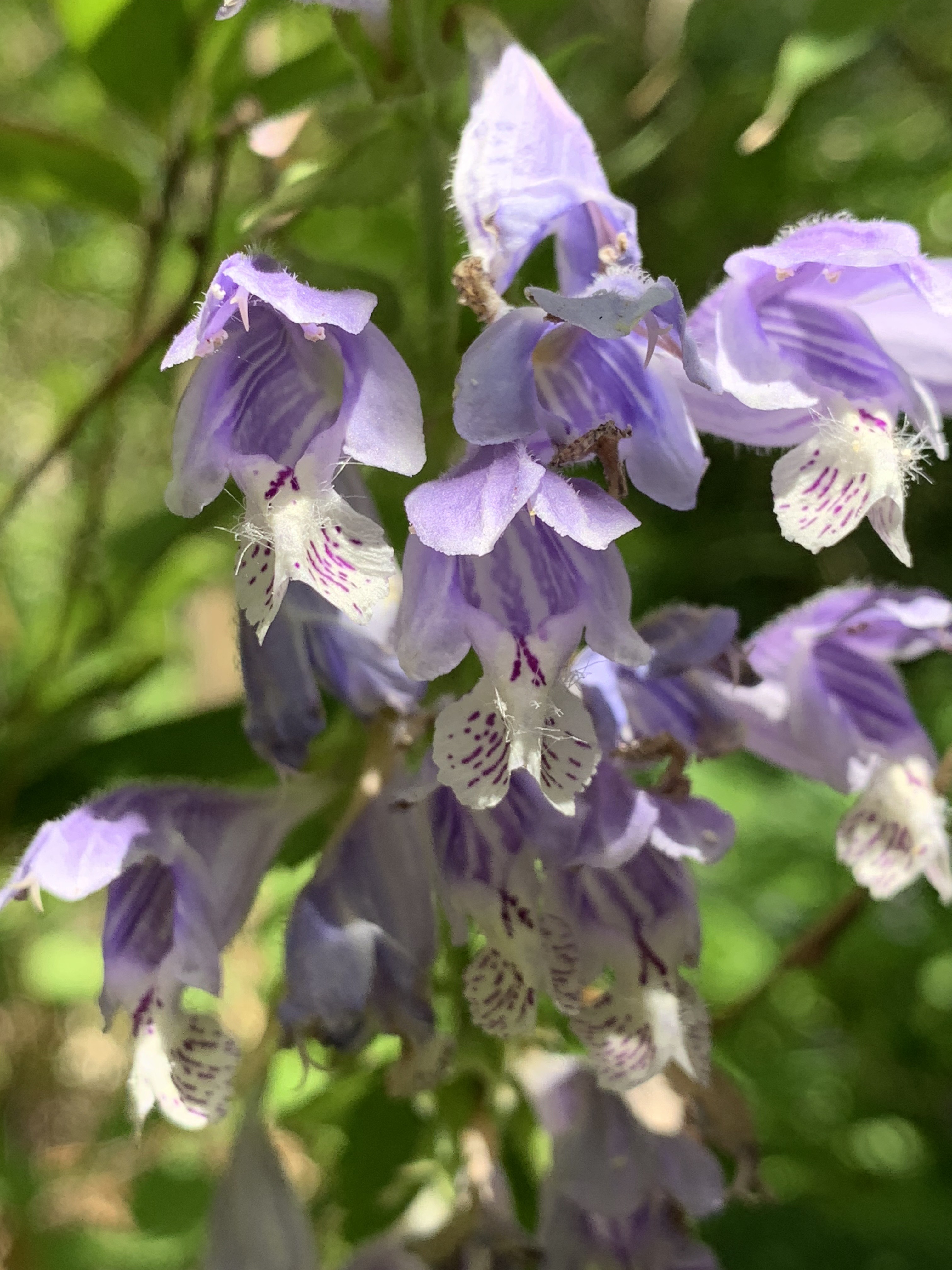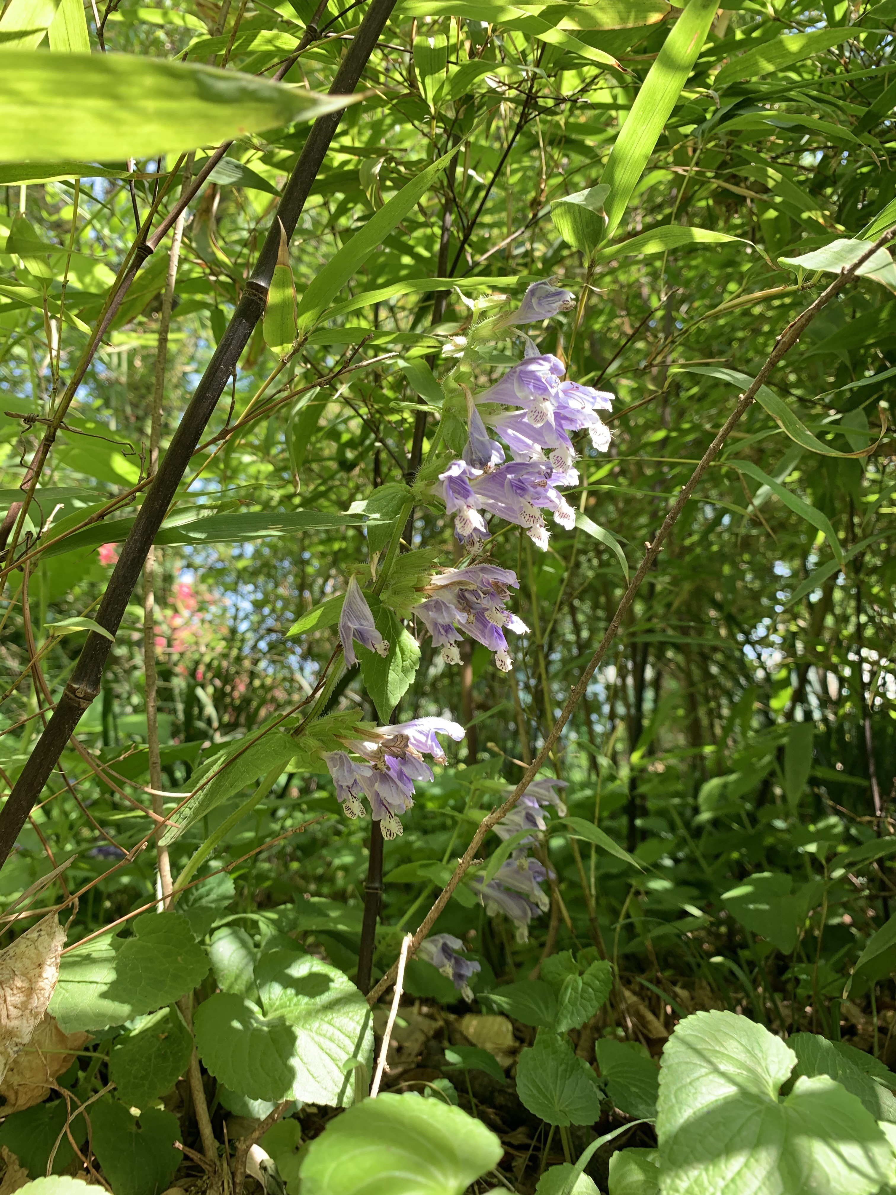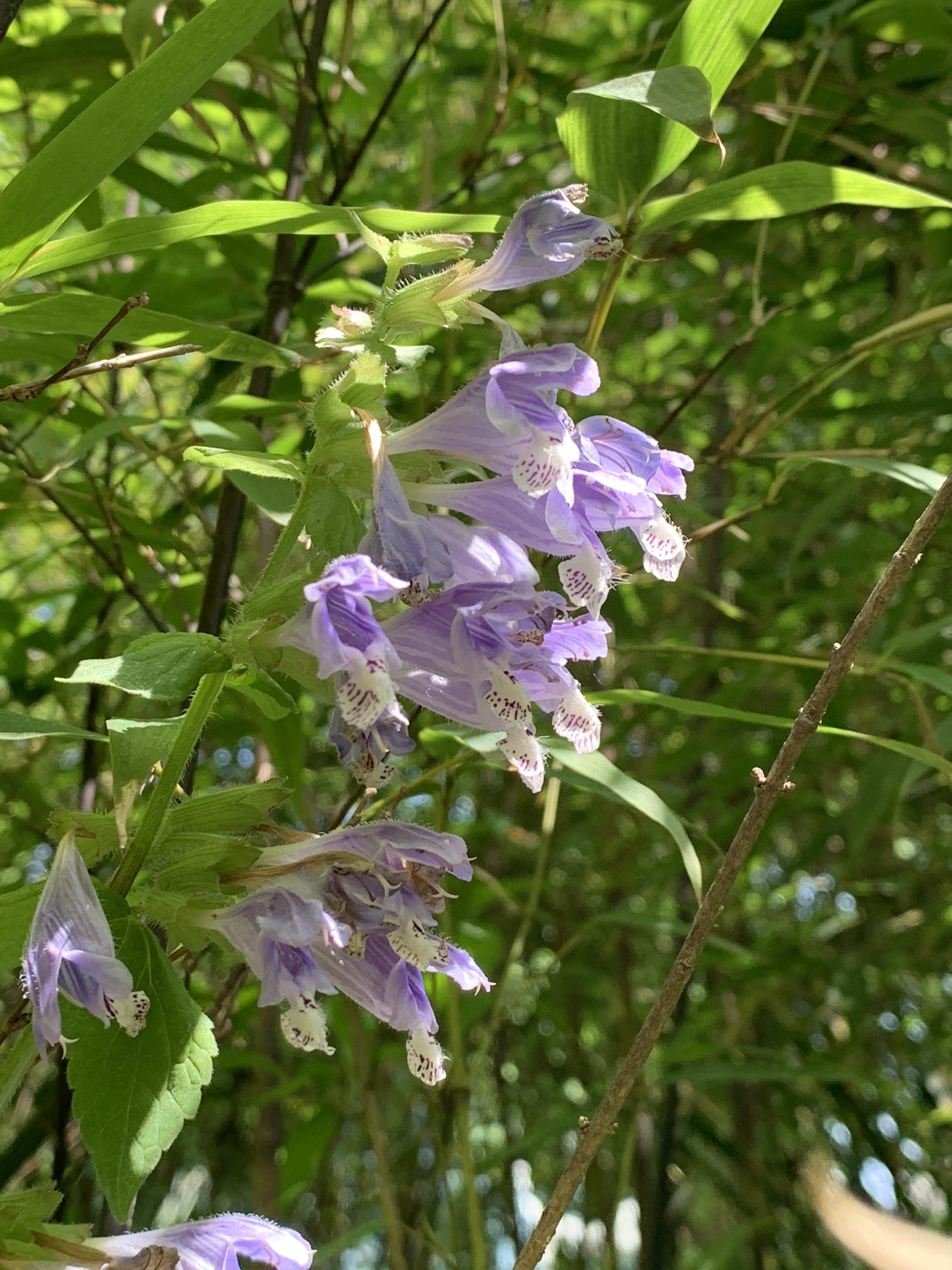 4~5월경에 꽃이 피는데 보라색 꽃이 윗부분 잎겨드랑이에서 나와 한쪽 방향을 향해서 달린다. 꽃받침 끝이 5갈래로 갈라지고, 화관의 윗입술은 2갈래로 갈라지며, 아랫입술은 3갈래로 갈라진다. 아랫입술의 중앙 열편이 약간 크고 자주색 반점이 있다. 4개의 수술을 갖고 있는데 그 중 윗 수술 2개가 길다. 꽃잎의 색이 흰색인 것과 붉은색인 것도 있다고 하는데 본 적은 없다.