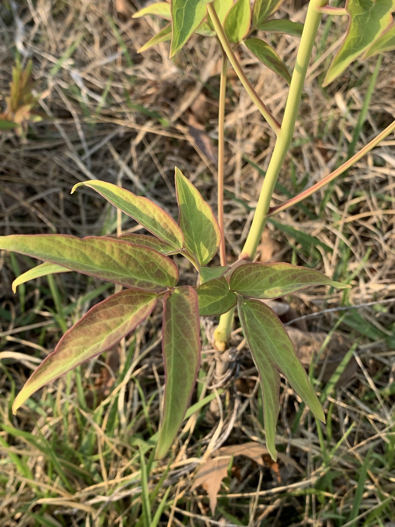 윗쪽 초록색 가지만 보고 풀인가 하지 말고, 조금 헤집고 땅에 가까운 곳을 보면 단단한 갈색의 나무 줄기가 보인다.