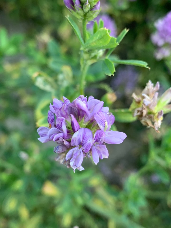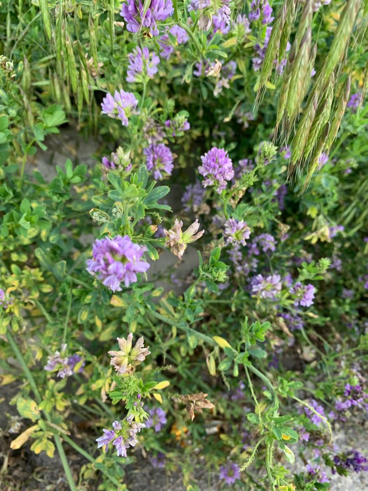 고대 그리스와 로마시대부터 가축사료로 재배되었던 영양분이 풍부한 사료식물이다. 전세계 많은 나라에서 중요한 가축사료 작물로 널리 재배하고 있다. 푸른 잎의 알팔파 건초는 양분이 매우 많고 맛도 좋은데, 단백질이 약 16%, 무기물이 약 8%가 들어 있으며, 이밖에도 비타민 A·E·D·K 등이 풍부하다. 주로 건초나 목초, 사일리지(silage)로 쓰인다. 알팔파의 새싹을 샐러드로 만들어 먹기도 한다.