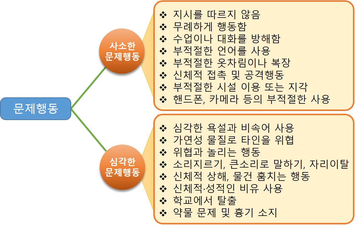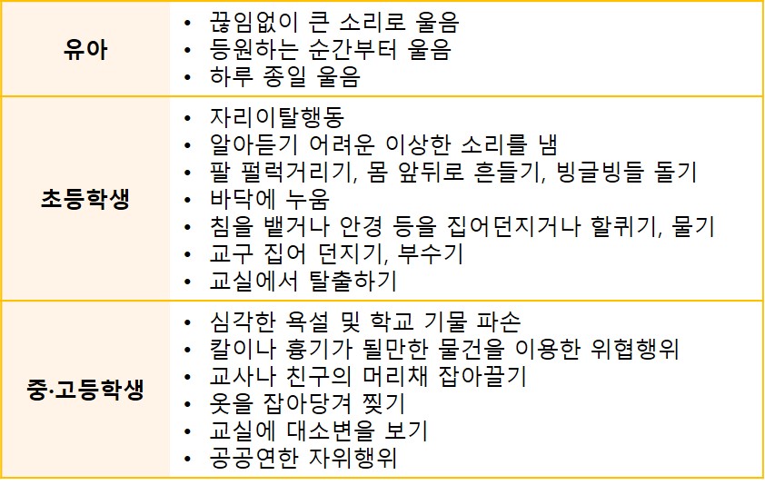 - 학습이나 활동, 놀이 등 학교 생활을 현저하게 방해하는 행동