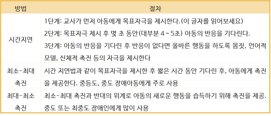 이외에 지적장애 학생의 기술 습득을 위해 적용할 수 있는 방법에는 다음과 같은 것들이 있다.