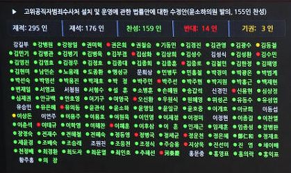고위공직자범죄수사처(공수처) 설치를 위한 법안이 12월 30일 드디어 국회 본회의를 통과했다. 김정재 의원은 의사진행 발언에서 민주당이 기명투표를 고집하는 이유는 청와대의 명령을 잘 따르고 있다는 것을 보여주기 위한 눈도장용이라고 비하했다. 눈도장에 집착하지 말고 양심에 따르라면서 무기명 투표를 요구했다가 부결되자 모든 자유한국당 의원이 표결에 참여하지 않고 본회의장을 박차고 나가버렸다.