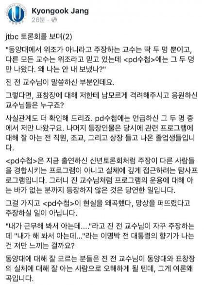 이에 대해 하도 어이가 없었는지 진중권이 방송에서 J교수라고 칭했던 장경욱 교수가 방송 후 자신의 페이스북에 조목조목 반박하는 글을 올리기도 했다.