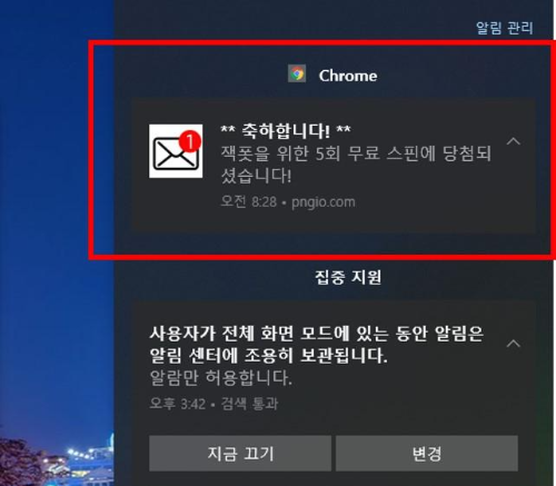 언제부터인가 윈도우 10 알림창에 자꾸만 광고가 뜬다. 처음에는 그러려니 했는데 종종 다소 민망한 광고도 뜨고 그래서 삭제하기로 함. 그래도 다행히 위쪽에 크롬에서 띄운 광고라는 것을 알게 해주니 다행이다.