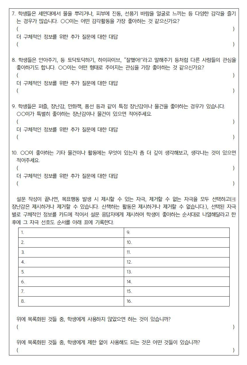 | 긍정적행동지원을 위한 체크리스트 및 문제행동 평가 척도 (2) | 2020.06.17 |