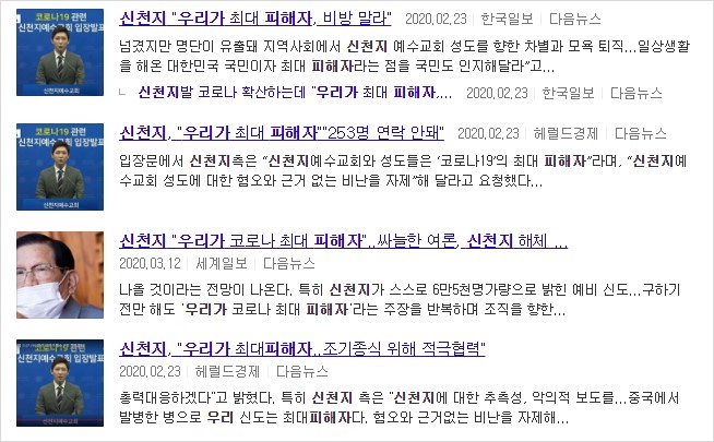 '우리는 가해자가 아니라 피해자다'라는 말을 하고 싶은 건데, 그건 맞는 말이지만, 저 위엣말은 틀렸다. 불과 얼마 전 신천지도 그렇게 말했다. 자기네들이 최대 피해자라고.
