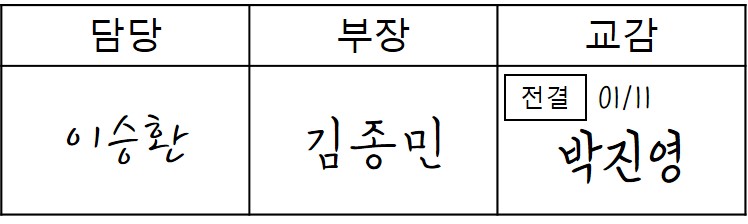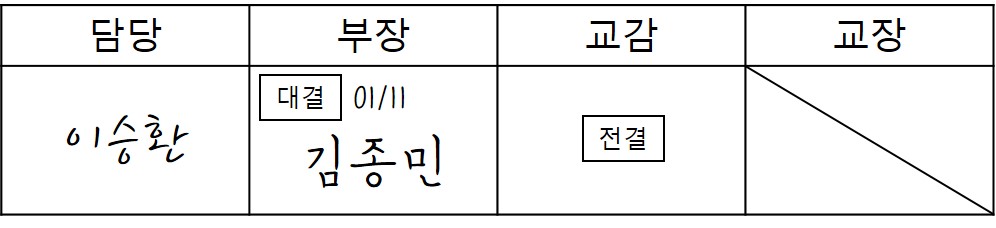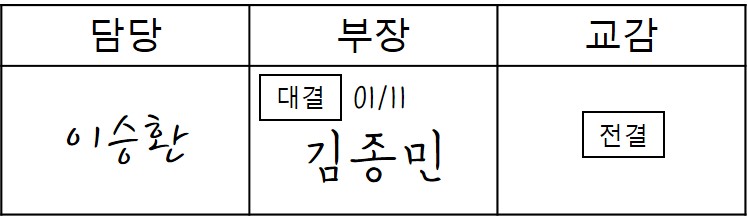 이제는 없어진 문화이겠거니 하고 있었는데, 아직도 주변 어디선가는 수기 결재를 하는 문서들이 있었고, 가만보니 전결이나 대결, 특히 전결의 경우 표시하는 방법이 전부 달랐다.