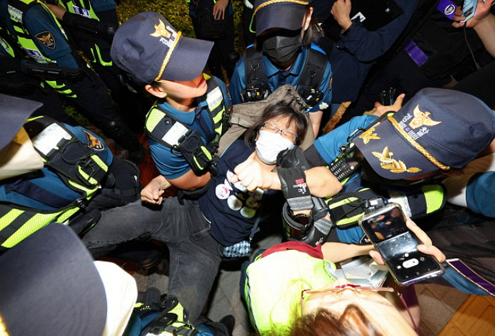 경찰이 지난 5월 25일 강제해산 이후 또다시 6월 9일 오후 서울 서초구 대법원 인근에서 있었던 비정규직 노동단체의 1박 2일 문화제를 강제해산시켰다.