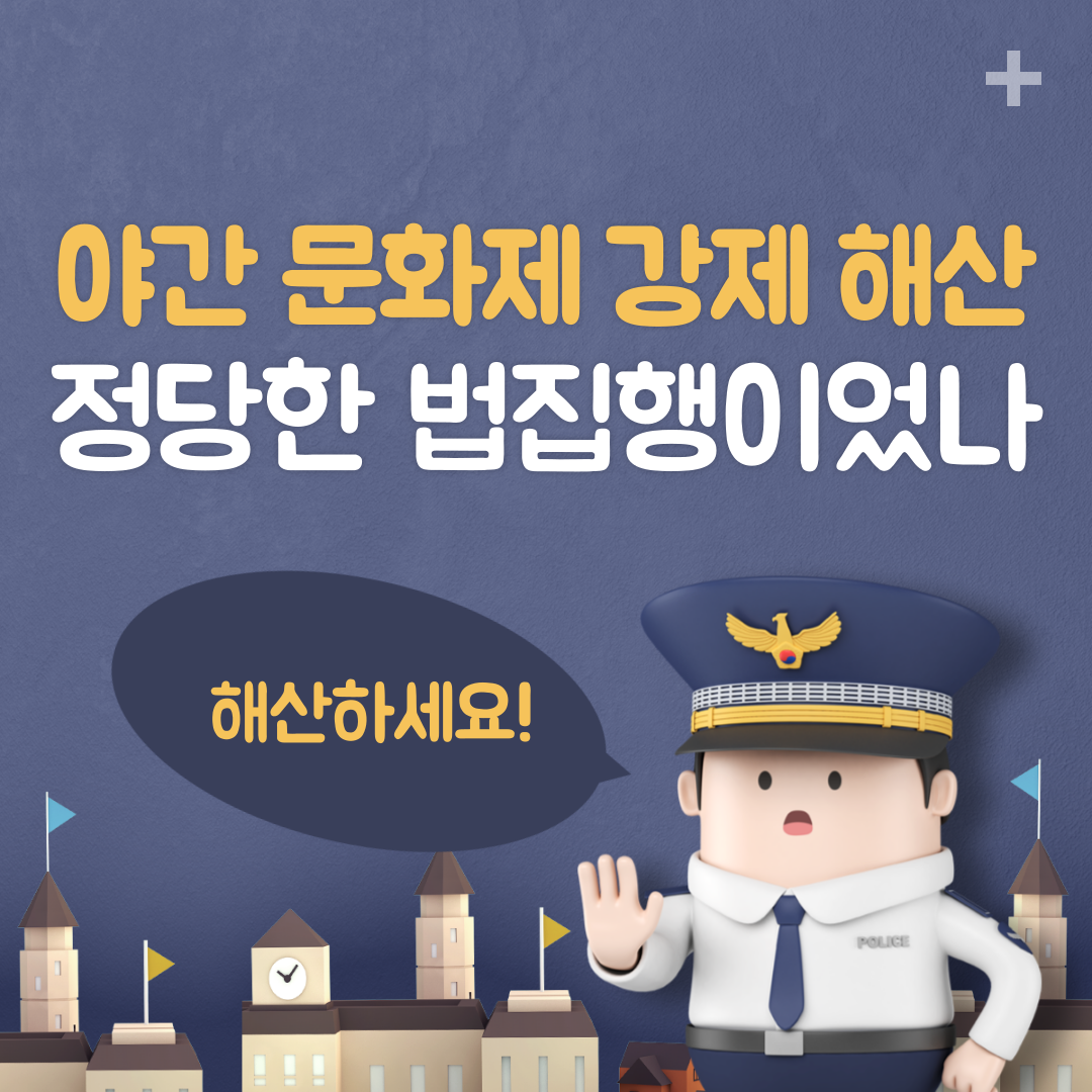 특히 야간 문화제를 실시하기 위해 모인 것을 두고 불법집회로 번질 우려의 '가능성' 만으로 야간 문화제를 강제로 해산시킨 것은 어이가 없는 일이다. 실제 일어난 불법적인 상황에 대해 공권력을 행사하여 진압하는 것 자체는 누구도 뭐라할 수 없지만 일어나지도 않은 일을 그럴 가능성이 있다는 이유로 강제 해산시키는 행위는 자칫하면 그 어떤 집회나 시위나 행사라도 권력자의 입맛에 맞지 않으면 얼마든지 탄압할 수 있게 된다는 점에서 엄연한 공권력 남용이며 헌법이 보장하는 국민의 자유를 억압하는 행위이다.